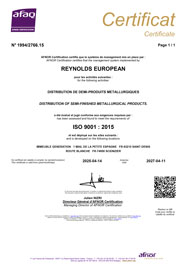 La société Reynolds European est certifiée ISO 9001 (Certification AFNOR). Cette certification vient d’être renouvelée afin de vous assurer de la qualité de nos services.